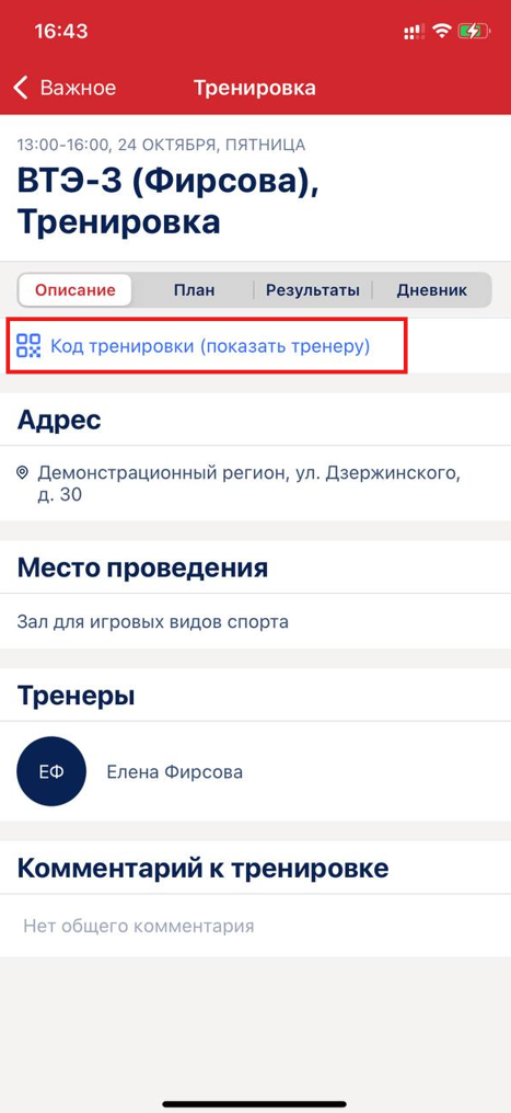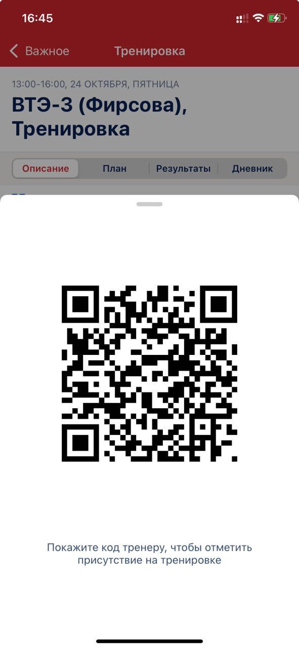 После сканирования кода тренировки система отобразит одно из информационных сообщений: