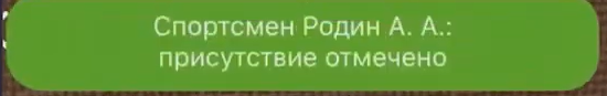 - «Спортсмен [Фамилия И.О.] присутствие отмечено».
