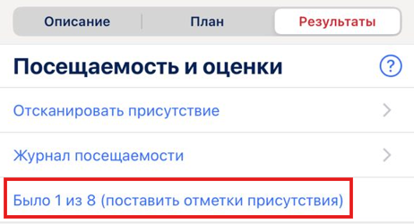 Автоматическое проставление посещаемости и оценок доступно с помощью кнопки «Все присутствовали» или кнопки «Отсканировать присутствие».