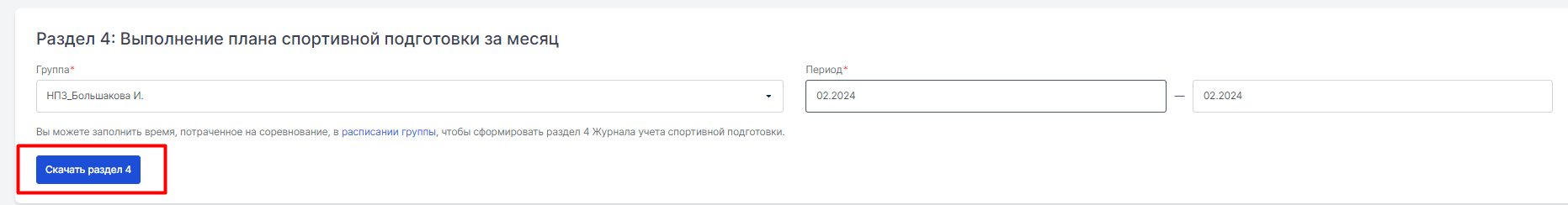 3. Скачайте раздел журнала «Выполнение плана спортивной подготовки».